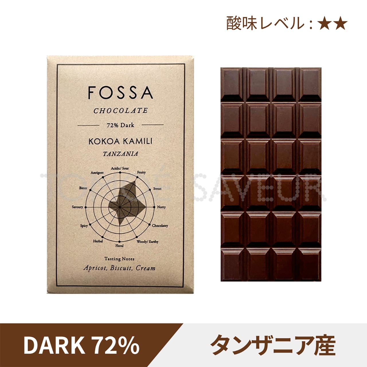 タンザニア産カカオを使用したカカオ72%ダークチョコレート。