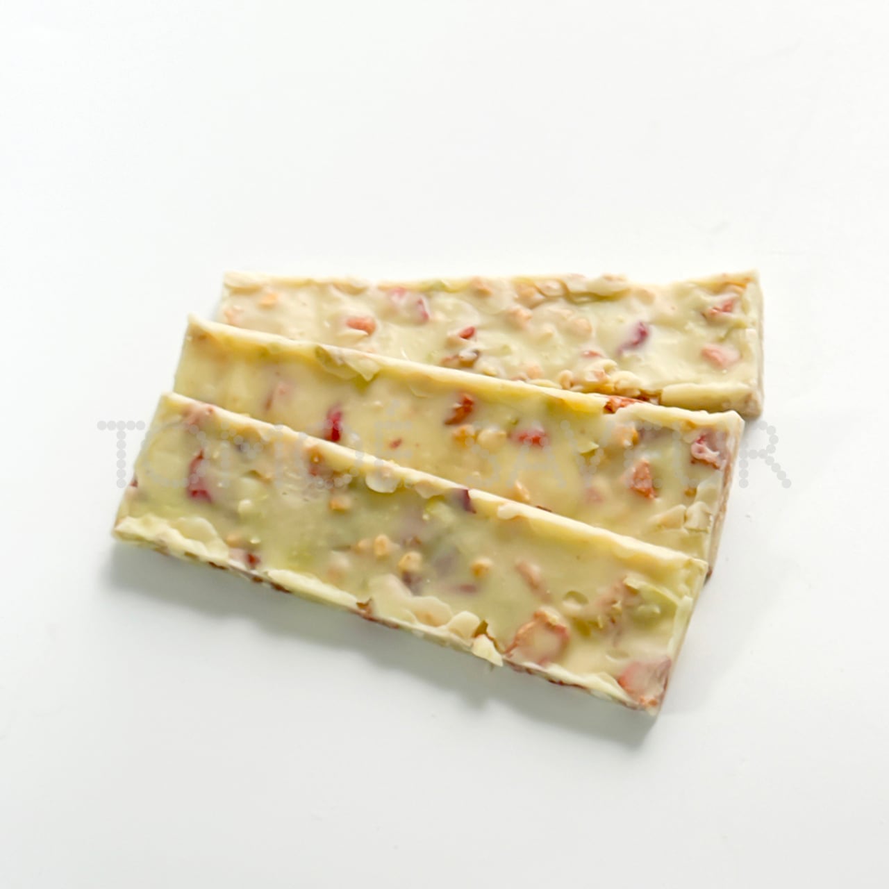 原材料名:ホワイトチョコレート(甘蔗糖、カカオバター、全粉乳)、ライスパフ、乾燥いちご、乾燥ラズベリー、(一部に乳成分を含む)